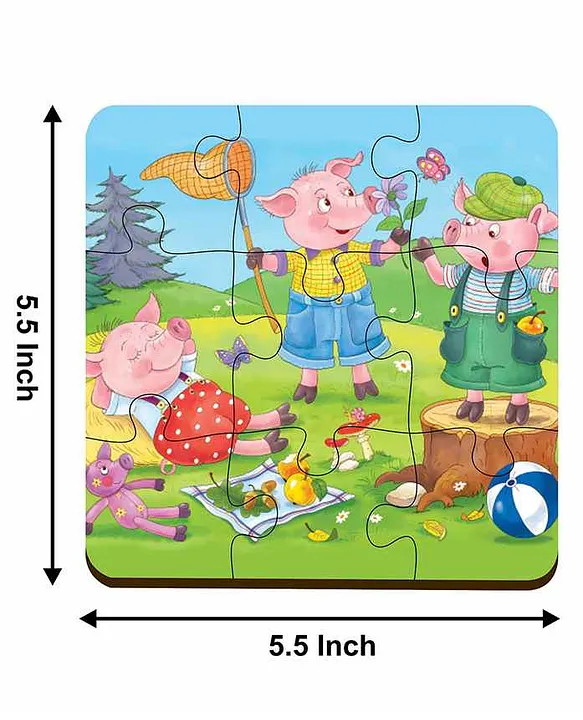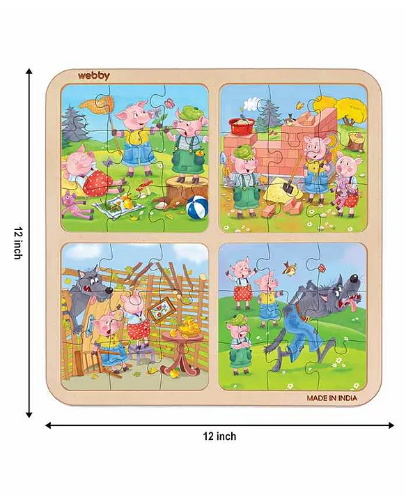 4 in 1 The Three Little Pigs Wooden Puzzle Multicolor 36 Pieces Features: