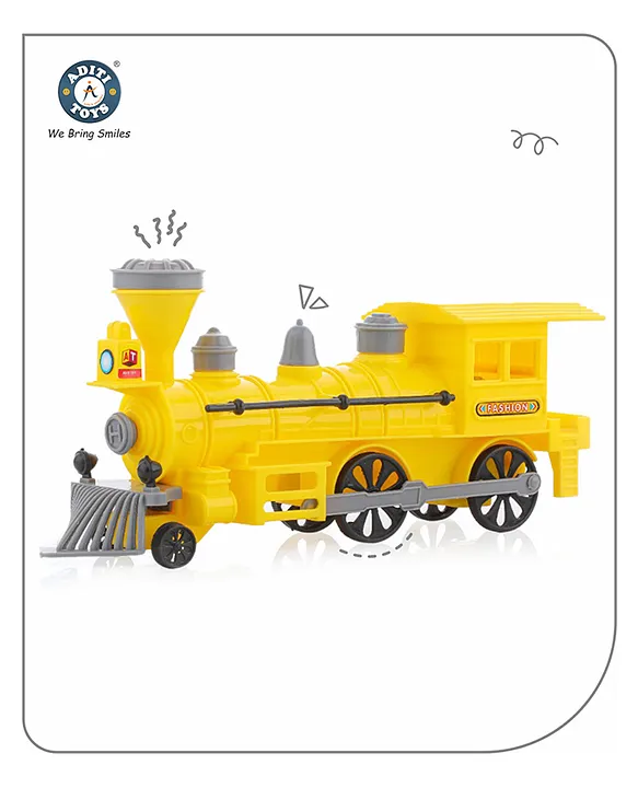 Aditi Toys Pull Back Steam Train Engine, with Led Toy for Kids, Plastic String Pull Back Train Non Toxic and Safe for Little Kids Yellow