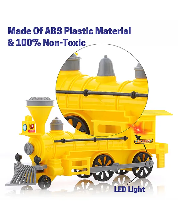 Aditi Toys Pull Back Steam Train Engine with Led Toy for Kids Plastic String Pull Back Train Non Toxic and Safe for Little Kids Yellow