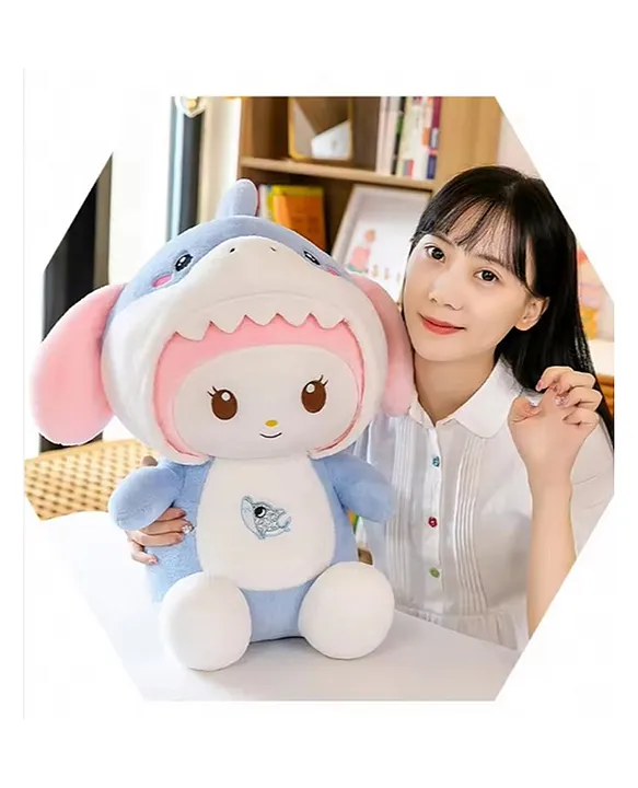 Product Length: 25 cm Product Description:Introducing this adorable Kawaii Shark Bunny plush toy that combines cuteness and comfort in a delightful 40 cm package. This charming stuffed animal features a unique design where a sweet bunny character wears an adorable shark costume, creating an irresistibly cute fusion. Made with premium ultra-soft materials, this plushie offers a wonderfully huggable experience that’s perfect for cuddles and snuggles. The plush toy showcases meticulous attention to detail with its expressive eyes, gentle smile, and soft color combination of baby blue, pink, and white. It’s an ideal choice for bedroom décor, adding a touch of whimsy to any space. Whether it’s for playtime, collection, or decoration, this plushie makes a perfect gift for kids, baby girls, toddlers, and collectors alike. The substantial size and quality craftsmanship ensure this lovable companion will be treasured for years to come. The gentle features and soft texture make it suitable even for younger children, while its unique design appeals to plush collectors of all ages.
