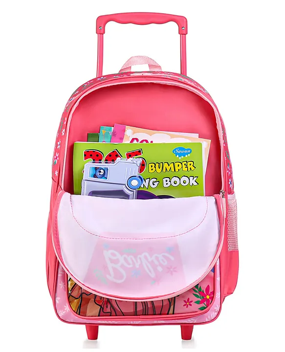 Barbie Trolley School backpack with PVC embossed Front Pocket Pink 18 inches Features:Crafted with meticulous attention to detail, this bag is more than just an accessory it’s a statement piece.Prepare to be spellbound by its functionality. This bag with 2 compartments and 1 pockets& 1 Water Bottle Pocket, it effortlessly combines style with practicality.The spacious main compartment is perfect for text books and note books, while the front pocket provides easy access to essentials like pens, pencils, and magical treasures.Designed with comfort in mind, adjustable padded shoulder straps ensure a comfortable fit for children of all sizes, while a padded back panel adds extra support and prevents strain, even during long days at school or on field trips.Specifications:Brand – BarbieType – BackpackAge – 9 to 12 years