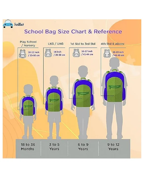SpecificationsBrand BunieType School BagMaterial Polyester, NylonDimension- L 29 x B 18 x H 42 cmBag Height 15 inchesAge 3-6 Years