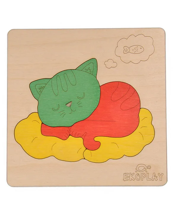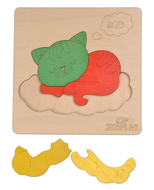 Cat On a Mat Wooden Board Puzzle Multicolour 4 Pieces FeaturesÂ