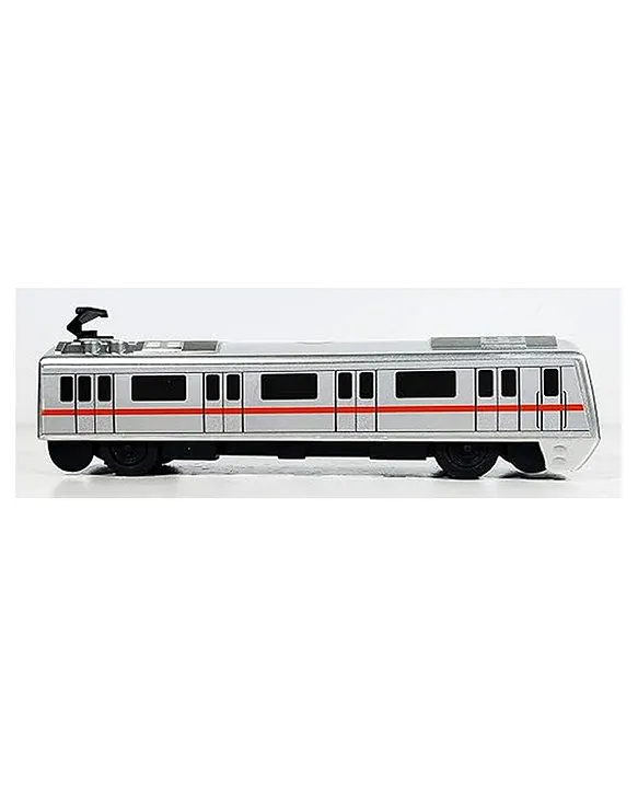 Centy Plastic Pull Back Metro Train Multicolor Product Information Specifications, Package InfoThis Metro train from Centy Toy is to the most accurate, detailed and quality scale model of the Delhi Metro train adhering strictly to all quality norms. Centy toys inspire children’s imagination as well as promoting their physical and intellectual development. Children will love stunting, racing, or crashing with this train. Children will love learn so much about automobiles in a fun way. It’s the perfect gift for vehicle lovers of all ages. Centy toys has created innovative educational Delhi Metro train toy with accurate details to give your child’s imaginative playtime.