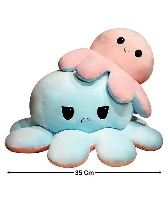 cuddlenest Big Octopus soft Plushie toy for every mood, Happy, Sad ,& Angry Premium Length 35 cm (Multicolor) Product Information Specifications, Package Info Key features:Reversible Mood Feature Flips between happy and angry expressions, making playtime more interactive and fun.Soft & Durable Made with high-quality microfibre filling and a polyester cotton exterior for extra comfort.Perfect for All Ages A charming plush toy that appeals to both kids and adults alike.Great Gift Idea Ideal for birthdays, anniversaries, or any special occasion to bring joy and smiles.