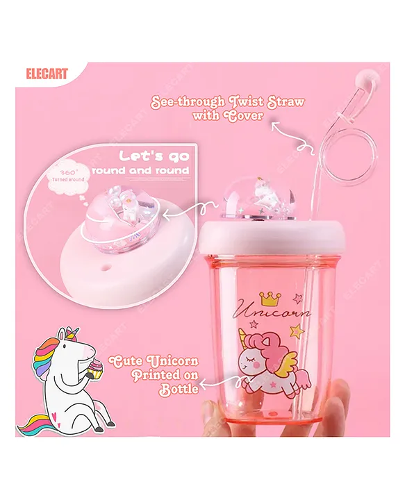Product description:Elecart drinking sipper Cup design is unique and innovative. On the top of the Cup, Cartoon spins 360°, which can make Kids drink water while playing. Available in Unicorn, Bear & Duck Character. The straw is made of the soft and flexible plastic which is the safe material of kids to drink. Soft straw with vertical line design, which has anti-bite, anti-collapse function. Light in weight & very unique bottle design so your little one can happily carry water bottle & drinks water/juice while playing with cartoon. Surprise Your Little One and see their Happiness bloom when they open this product out in front of the family. Specially designed for Teenagers.