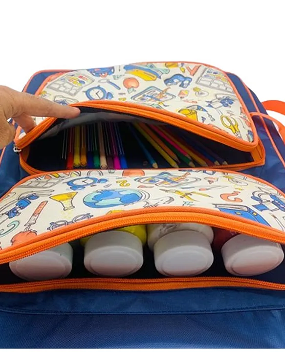 Echo Boomers White Printed A3 Art Board Drawing & Activity Backpack Bag with Multiple Pockets Height 15 Inches Features:· Multi-pockets accommodates all your necessary art n craftmaterial, crayons, sketch pens, pencil colors, accessories, & drawingboard. All in different compartments.· Drawing bag are made of special harmless material · All seams are stitched for durability. · Washable, printed on one side wide handle for comfortablycarrying over your shoulder.· Availablein 6 beautiful art n craft prints.