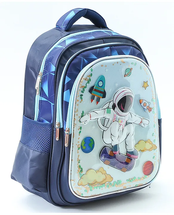 Fab N Funky Astronaut theme School Backpack2 Main Compartments 1 Front Pocket 2 side Bottle PocketsWater ResistantLong lasting and Durable Zippers Comfortable back cushioning For School Travel and OutdoorsBlue 16inches