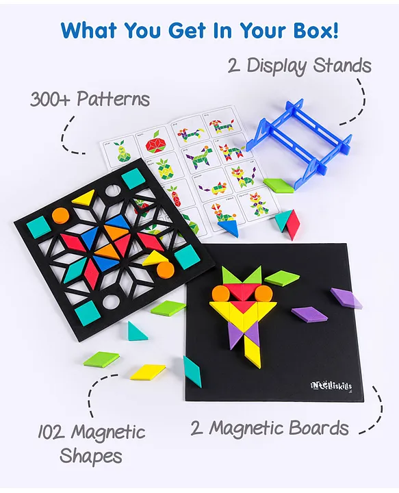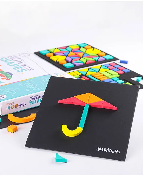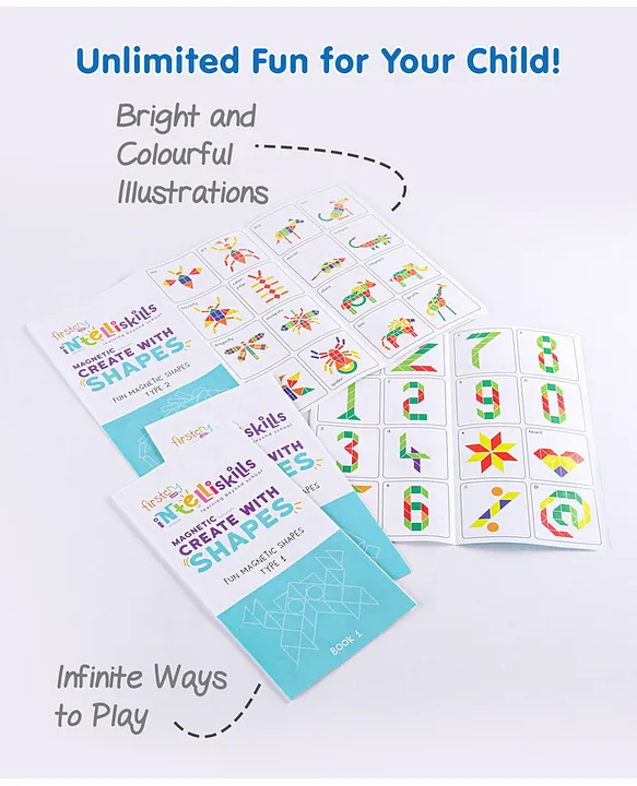 Educational fun game created by early learning educators at Firstcry Intellitots preschoolS.T.E.A.M. series game helps in cognitive development, builds critical thinking, construction abilities, spatial intelligence, logic and early numeracyThis magnetic learning toy will give hours of play to your child, using their imagination to create hundreds of combinations with the magnetic shapes