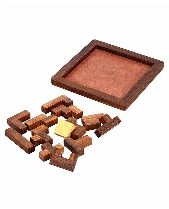 Following in the tradition of the original Pentominoes games, the puzzle includes a total of thirteen pieces, which are also made out of Indian rosewood. The pieces are shaped like english alphabets and have different finishes to make the game more attractive.