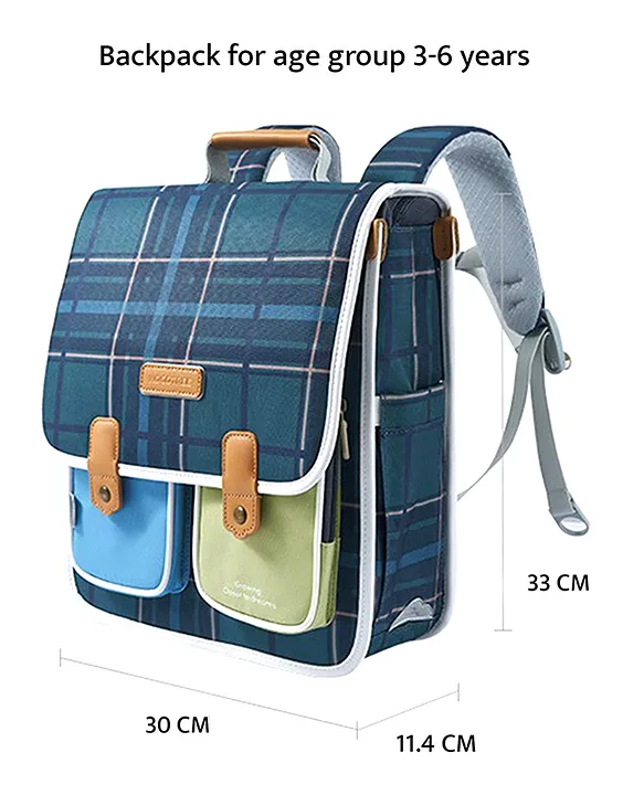 Little Surprise Box Little Surrpise Box Blue Scottish Plaid Checks Rectangle style Backpack for Kids12.99 Inches featuresCompartments the good design makes this piece extremely convenient to carry all items well segregated in different compartments. This has 1 front pocket 2 small mesh compartments inside and 2 mesh compartments at the side. It also has an elastic band inside to carry a tablet Laptop Safely. Convenient handle at the top to carry the backpack when not on the shoulder. Sleek Look The sleek and bulky look makes this piece a total winner for all age groups. An additional name tag or card sleeve is attached to the bag where the child can place the school ID or school card safely without the trouble of losing it.
