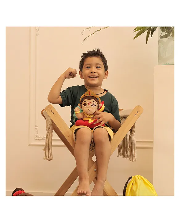 Mantra Chanting Baby Hanuman (Small 20 CM) Musical Soft Plush Toy Best Gift for Infants, Toddlers & Babies Features:MEANINGFUL PLAY & GIFTING IDEA – Helps children develop a bond with the power figures rather than fearing them.SUPERSOFT & SAFE FOR AGES 1-5 – Suitable for children aged 1-5 years because of their non-toxic materials; plush texture; light-weight and bright colors.HOW TO USE – Press toy’s belly to play the mantras & see your child getting hooked with the power of music & mantras and hopefully teach them some in the process.COGNITIVE & EMOTIONAL DEVELOPMENT – Our Early learning plush toys are designed to stimulate children’s senses and cognitive development. They are also ideal for imaginative play, storytelling, and socialization, fostering creativity, language, and emotional skills.