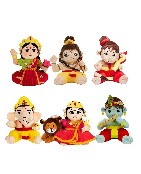 Baby Hanuman, Baby Krishna, Baby Ganesha, Baby Rama, Devi Lakshmi & Devi Durga Plush Toy With Sound Box
