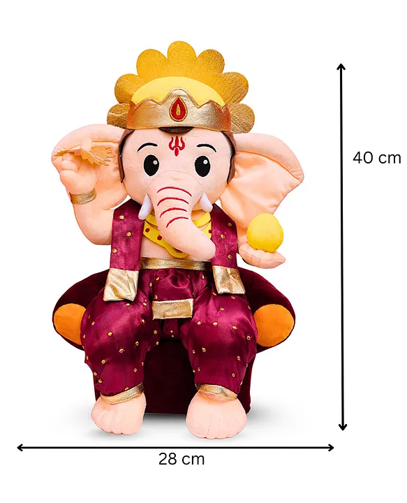 Mantra Chanting Maharaj Ganesh Height 40 cm Features: EANINGFUL PLAY & GIFTING IDEA Introduceyour children to the beloved Ganesha ji through fun, music, and comfort. Bychanting sacred mantras, this plush helps little ones form a loving, friendlybond with Bappa, making spiritual learning natural and enjoyable.SUPERSOFT & SAFE FOR AGES 0-5 Crafted fromhigh-quality, non-toxic, baby-safe materials, Maharaj Ganesh is lightweight,huggable, and perfectly safe for everyday cuddles and play.PERFECT FOR FESTIVE & SPECIAL OCCASIONS Whether it’s Ganesh Chaturthi, a birthday, mundan ceremony, baby shower, orfestive gifting, this divine plush makes a heartwarming and thoughtful gift forkids and families.HOW TO USE Just press Ganesha ji’s belly toplay soothing mantras that calm, delight, and engage your little one. Abeautiful way to introduce children to music, rhythm, and the power ofdevotion.SUPPORTS EARLY DEVELOPMENT Beyond play, thismantra-chanting plush encourages sensory stimulation, emotional bonding, andimaginative storytelling, while gently instilling values of faith, love, andwisdom. Specifications:Brand – Panda’s BoxType – Plush ToyAge – 3 Years+Dimensions – L 28 x W 26 x H 40 cmMaterial – Plush (safe & non toxic) Product Description:welcome home Maharaj Ganesh, the remover of obstaclesand bringer of wisdom, in the most adorable way! Our Mantra-ChantingMaharaj Ganesh Plush is designed especially for infants and toddlers,blending devotion with joyful play.Items included in the Package: Plush Toy BIS Certification: 8800121516