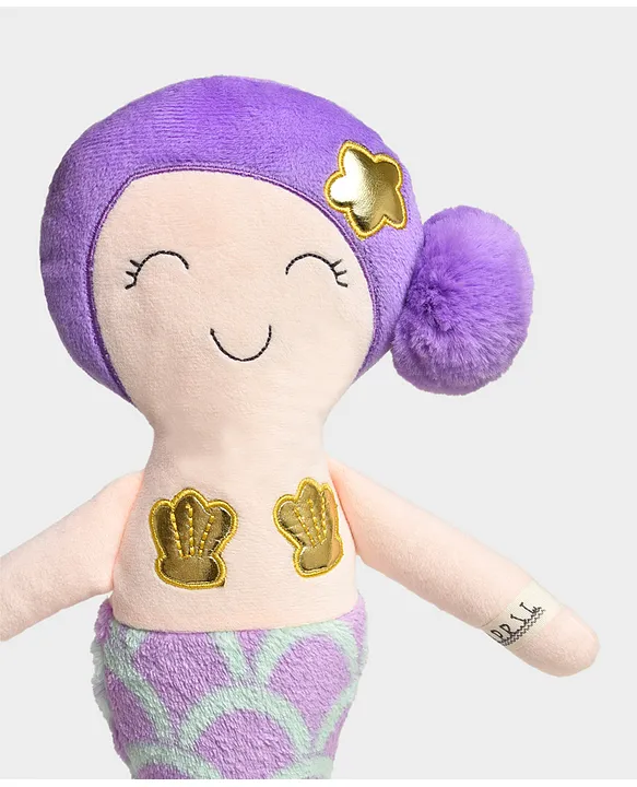 Mermaid Violet Wave Dream Plush Doll Soft Toy Purple 40 cm Features Mermaid soft toy for kids with a personalised name- April Made from ultra-soft, premium-quality 100% polyester fabric Embroidered facial features for added safety and durability Encourages imaginative play and creativity Adds a magical touch to nursery décor Ideal gift for birthdays, baby showers, and special occasions Lightweight and easy for small hands to hold Specification:Brand- Mi ArcusType Soft ToyAge 3 Years +Material – 100% PolyesterDimensions – L 40 x B 14 cm Product DescriptionBring home the magic of April,the mermaid soft toy by Mi Arcus a charming and cuddly friend that sparksimagination and brightens up your little one’s playtime. With her flowing tail,gentle smile, and delightful design, she’s perfect for snuggles, storytelling,and adding a splash of fantasy to any nursery or playroom. Soft, sweet, andendlessly lovable, this mermaid is sure to become a treasured companion foryour child’s adventures and quiet moments alike. Items Included in the Package:1 Soft Toy