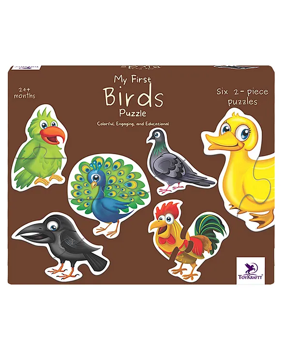 “Engaging Puzzles for Kids 2-3 Years: Explore 6 sets of vibrant bird puzzles, featuring Pigeon, Parrot, Duck, Peacock, Rooster & Crow perfect kids’ puzzles for 3-year-olds.Fine Motor Skill Development: Foster fine and gross motor skills, eye-hand coordination, and visual discrimination with these Toykraft puzzles, designed as toys for 3-year-olds.Introduction to Jigsaw Fun: Introduce your child to the joy of solving jigsaw puzzles! These 2-piece puzzles are tailored for 18-month-old children, providing an appropriate challenge with self-correcting matching edges.Curiosity Sparking Design: Specifically crafted for 2-3 year old boys & girls, this toy instills curiosity as they discover new animals through bright colors and chunky cardboard pieces the ideal kids’ puzzle for 3 years.Memory Skills Booster: Elevate your child’s memory skills with this interactive jigsaw puzzle game. A perfect activity toy for 2-year-olds, designed to enhance cognitive development.”