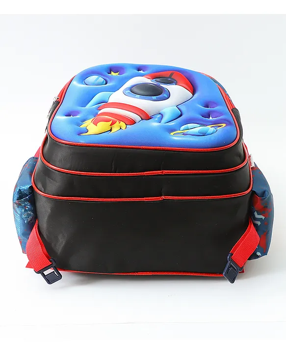 Play Nation Trolley Backpack with Rocket Print1 Main Compartment 2 Front Pockets 2 side Bottle PocketsNylon FabricLong lasting and Durable Comfortable back cushioning For School Travel and OutdoorsRed & Black 16 inches