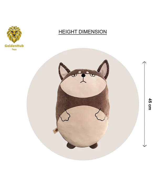 Plush Dog Cushion Grey and White Soft Toy Height 45 cm Features:Keeps kids playful for Sweet Long HourIt is also Gives Sweet Memory ForeverMade with quality material, safe for kidsDevelops social and emotional growthThis toy comes with a joy and delight which can be used to store memory with toys as well.Specifications:Brand GoldenhubType – Soft ToyAge – 3 Years +Material – 100 % Polyester fibreHeight – 45 cm