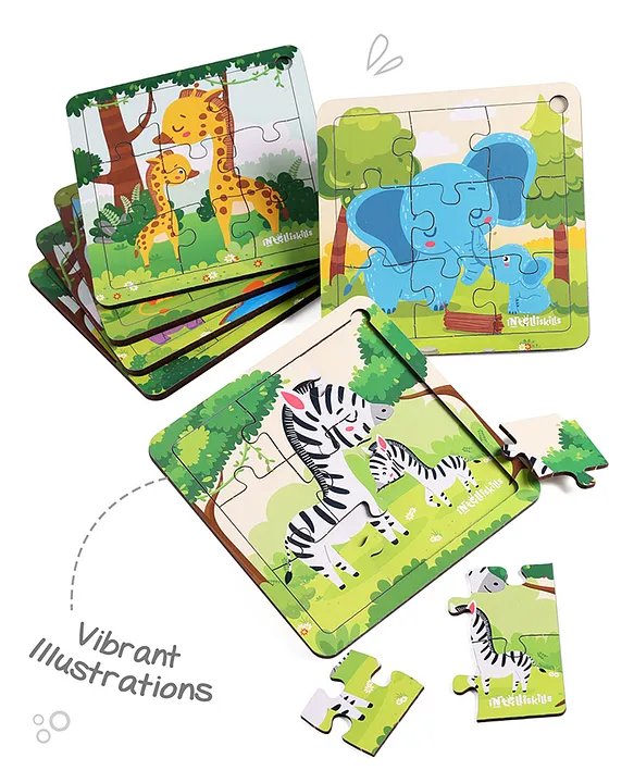 Premium Wooden Animals & Babies Jigsaw Puzzles 54 Multicoloured Pieces