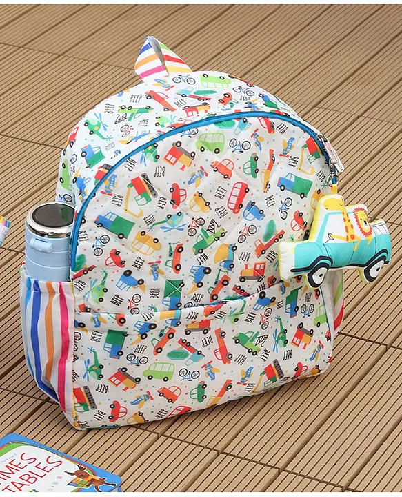 Rosada Cars Printed Backpack for Kids With Matching Keychain hanging, Waterproof Trendy and Spacious Kids Backpack, Stylish Bag for Kids Small(10 Inches) Features: