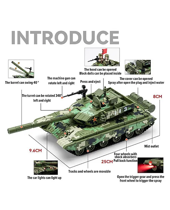 Product Description:The military tank can usually be adjusted or rotated, providing added realism and fun. Durable Design Made from sturdy materials, this truck is designed to withstand rough play and last through countless adventures. Bright Colors Eye-catching colors make it visually appealing to young children. Safe for Kids Designed with child-safe materials and no sharp edges, making it suitable for younger kids. Educational Play: Helps develop fine motor skills, hand-eye coordination, and imaginative storytelling.note this product comes in various color and design once available will dispatch to you.