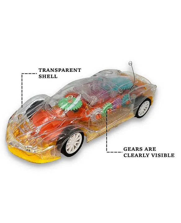 SANJARY Sanjary Transparent Body and Mechanical Gear Technology Special Edition Remote Control Rechargeable Car for Kids with Lights and Sounds color design may vary