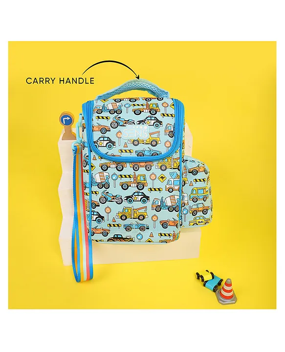 SENS Sens Class Pro Truck Picnic Bag Height 12 Inches Features:Insulated Lining Keeps food warm or cool for longerRemovable Shoulder Strap Carry it your way as a shoulder bag or by hand.Side Pocket Ideal for bottles, snacks, or quick-access items.Customisable Name Display Personalize it with your child’s name.Sturdy Carry Handle Easy to grab and go!