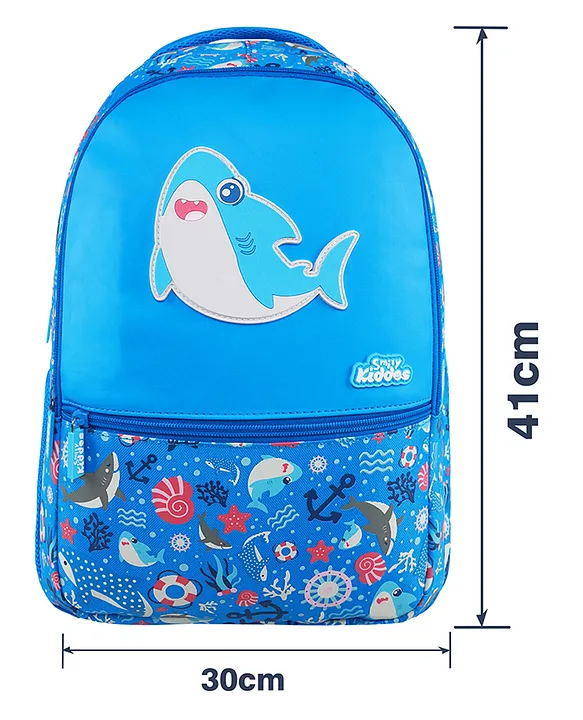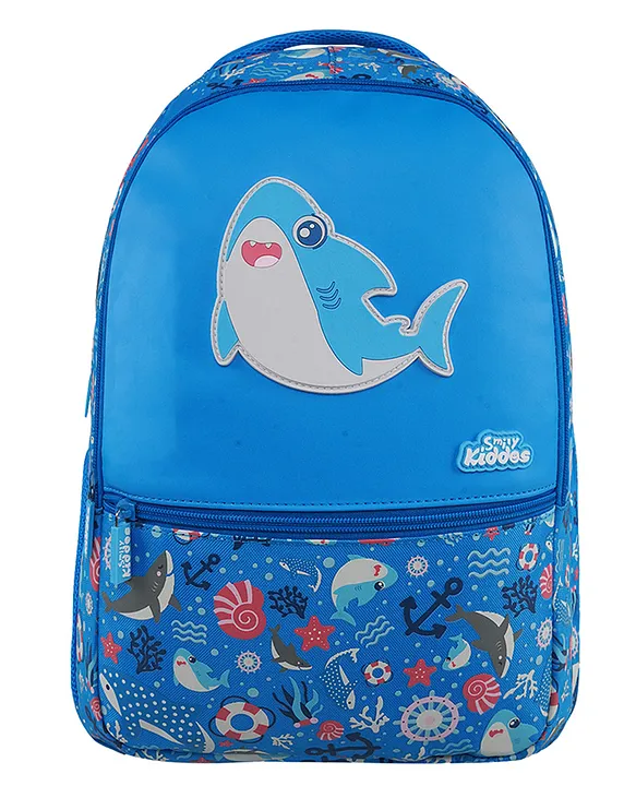 Smily Kiddos 16 Ltrs Backpack Baby Shark Theme Blue Height 16 Inch Features:Spacious compartmentsPadded, adjustable, and wide shoulder straps for added comfortHeavy-duty zippers and slidersStrong inner lining for extra support and enhanced weight-carrying capacityOne mesh side pocket for water bottlesPadded back support for greater comfort and water resistanceReinforced bar-tack stitching at load points for increased durabilitySpecifications:Type: School BagAge: 6 to 9 YearsProduct Details:Number of Compartments: 2Number of Pockets: 1 side mesh pocket, 1 front pocketPadded Straps: YesWater Resistant: YesPhysical Measurements:Dimensions: 41 x 30 x 13 cmCapacity: 16 litersProduct Description:This attractive school bag is designed to cater to the needs of children with their busy school schedules. Spacious, trendy, and eye-catching, it’s a bag your child will love to carry everywhere. It combines superior quality and finish with durability and affordability. The ergonomic design helps prevent back strain, ensuring comfort for young shoulders. Made from high-quality materials, this bag promises long-lasting performance for years to come.Items Included in the Package:1 School Bag
