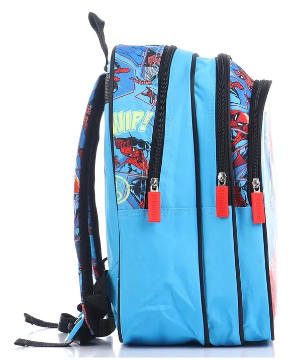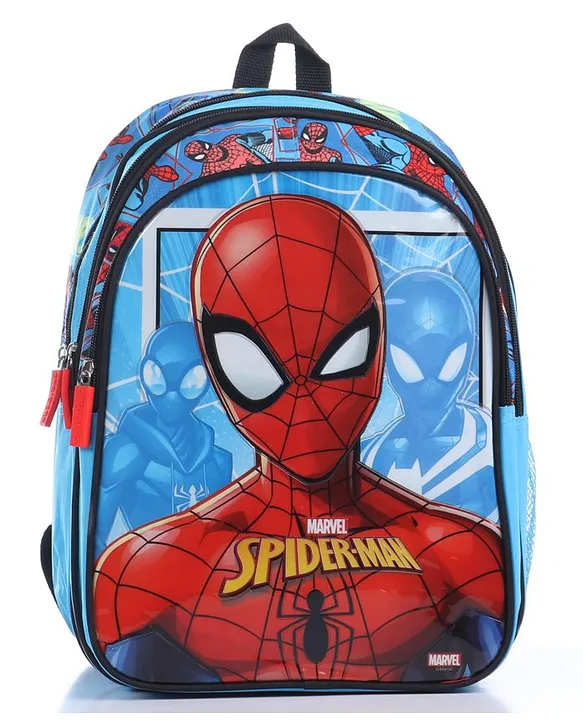 Spider Man Shadow School Backpack Red & Blue 16 Inches Features:Featuring padded, adjustable and wide shoulder straps for shoulder comfortStitched in light weight water repellent polyester fabricSpacious compartments along with heavy duty zippers and slidersBase comes with form padding for extra protectionHaving one mesh side pockets for water bottles