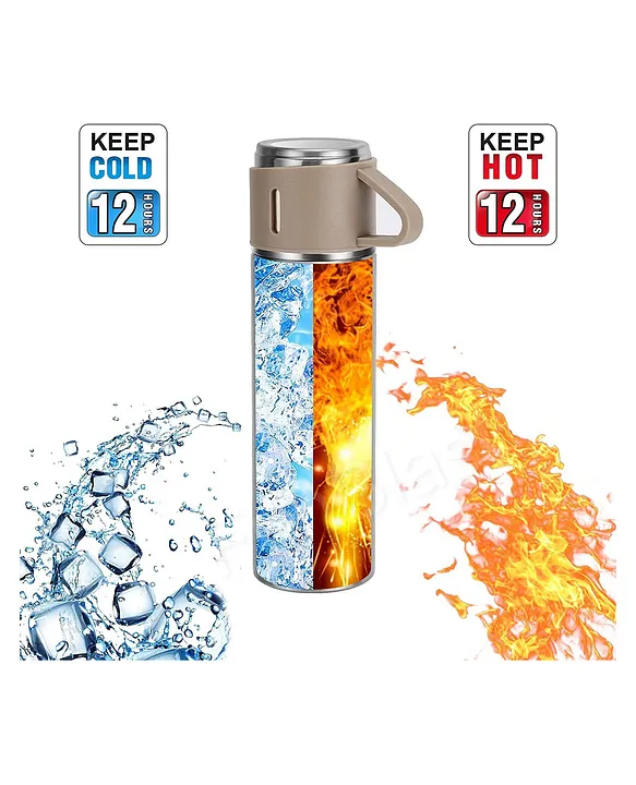 Product DescriptionTea and coffee flask bottle with cups stainless steel thermos 500ml/16.9oz vacuum insulated bottle with cup for coffee hot drink and cold drink water flask Keep your drink cold and hot for up to 12 hrs, perfect for kids, office, travel, gym, sport, yoga etc. the bottle is safe in backpacks, beach bags, or the edge of your counter top FunBlast Stainless steel vacuum cup are designed with the perfect size for both kids and adults. Well-designed insulated bottle made with high quality finish and durability. Thermos flask for keeping hot beverages