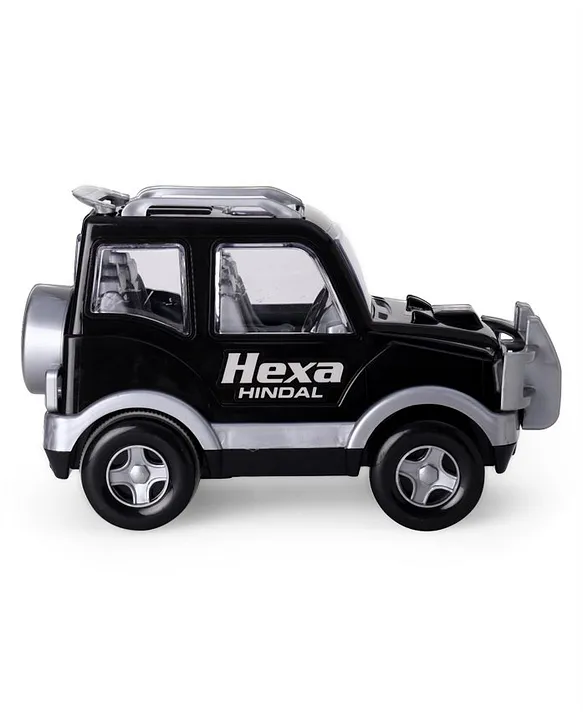 United Agencies HINDAL HEXA Friction Toy Good size and easy for small hands to grip.Powerful Friction. No Batteries Required.Made of non-toxic Material.Helps in hand-eye coordination and develops motor skills.Best for both indoor and outdoor play.Specifications:Brand – United Agencies Type – Jeep Toy CarAge – 3 Years+Material – PlasticProduct Dimensions – L 26 x B 14 x H 17 cmPackaging Dimension – L 27 x B 14 x H 17No of Wheels – 4Front Wheels Diameter- 5 cmBack Wheels Diameter- 5 cm Weight – 608 gm