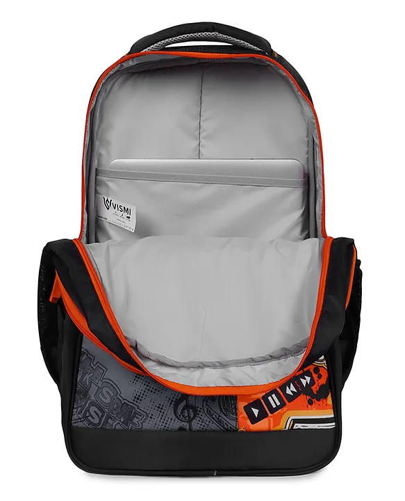 VISMIINTREND 19Inch School Bag for Boys & Girls Spacious Lightweight Durable Backpack with Multiple Compartments & WaterResistant Material Groove Black & OrangeHeight 19 Inches