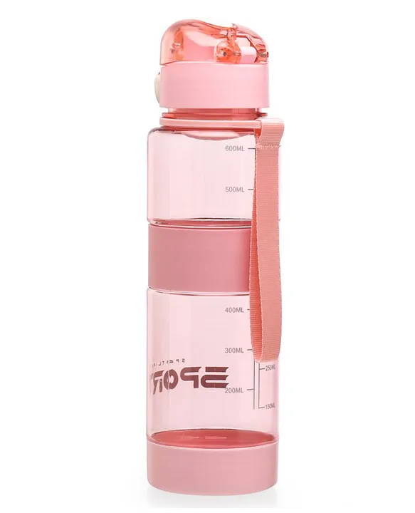 Water Bottle with Push Button Cap Pink 600 ml Feature:Comes with a push-button capThe bottle has a strap for carrying and hangingCapacity markings on the bottleSpecifications:Type – Water bottle