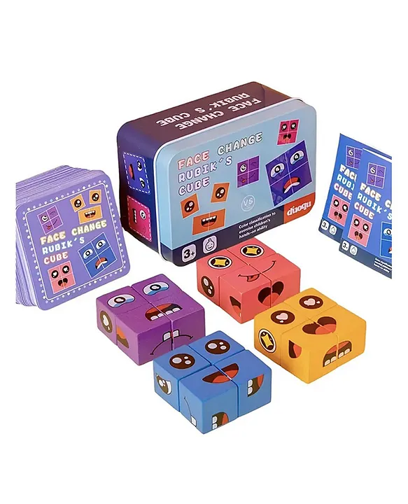 Wooden Face Change Rubic Cube Blocks Puzzle for Kids Colour may vary