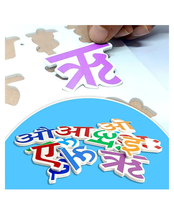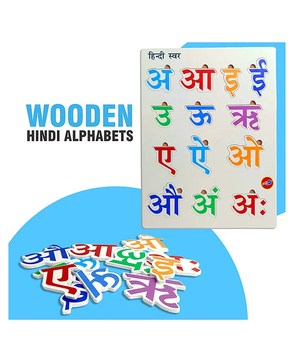 Teaches Hindi alphabets to preschool kids in a fun and interesting way.Children will develop hand-eye coordination and fine motor and problem-solving skills A child- safe educational fun toy to promote early learning! Enjoy and spread the joy!Knobs present on the pieces help in properly holding and placing the piece correctlyBrightly colored and chunky pieces for better grip Made from wooden material and non toxic paints which is safe to useSpecifications: