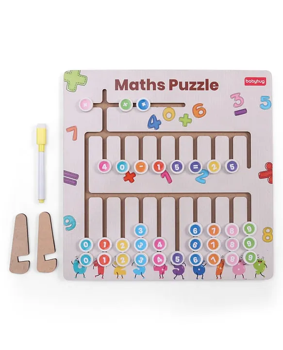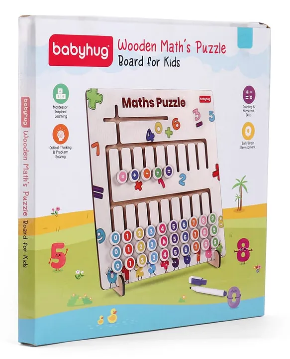 Product Description: Make math magical with the Babyhug Wooden Maths Puzzle Board! Designed with chunky, colorful numbers and math symbols, this Montessori-inspired toy transforms counting and problem-solving into playtime fun. Each number has a word printed underneath, encouraging recognition and early literacy. Safe and sturdy with smooth edges and non-toxic paint, it’s perfect for little learners to explore hands-on. Whether it’s counting, tracing, or solving simple equations, this puzzle board promotes motor skills, cognitive growth, and confidence. A thoughtful educational toy for preschoolers that makes learning as exciting as play.