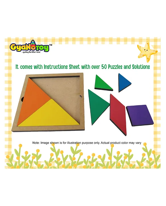 Wooden Tangram and Honey Bee Puzzle Multicolour 16 Pieces Features:Made from premium quality MDF and non toxic water based colorBrightly colored, smooth-piecesHelp build early shape & color recognitionImprove motor skills, hand eye coordinationKids can make numerous patters & figures out of these blocks as per their imaginationSpecification:Brand – GYANOTOYType – Puzzle setAge – 5 Years+Product Dimension – L 15 x B 13 x H 0.8 cmPackage Dimension – L 21 x B 21 x H 3 cm