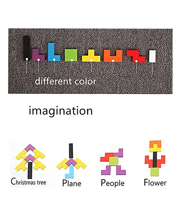 Wooden Tangram Brain Teaser Board Puzzle Multicolor 40 Pieces Features: