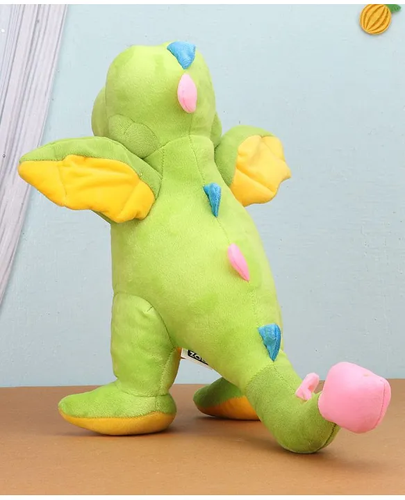 Zoe Dinosaur Soft Toy Green Height 40 cm Product Information Specifications, Package InfoProduct FeaturesTop-Notch Quality: Crafted with care using high-quality, non-toxic materials, this dragon is neatly stitched to ensure safety and comfort for your little one. Only the best for your child!Cuddly Softness: Made of ultra-soft material with a plush poly fiber cover, this dragon provides the ultimate cuddly feel for endless hugs and snuggles.Best Buddy: This adorable dragon serves as a great companion and a comforting hugging pillow, offering warmth and joy during playtime or bedtime.Irresistibly Adorable: Featuring a cute dragon design with firm eyes, wings, and a tail, this toy enhances its appeal to children and makes it irresistible!Adventure Ready: Lightweight and portable, this dragon is easy to carry during travel or outings, ensuring your child can take their beloved toy wherever they go.
